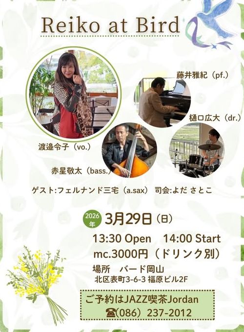渡邉令子(Vo.)・藤井雅紀(Pf.)・赤星敬太(Ba.)・樋口広大(Pf.)らによるライブです。